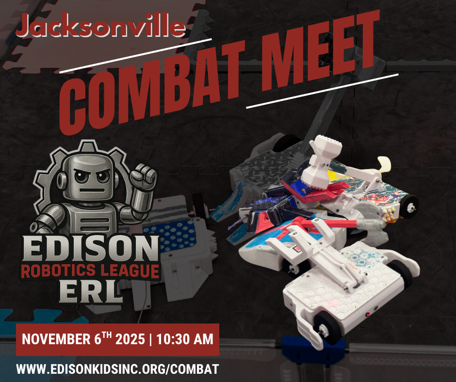 Edison Robotics League: Combat Meet The next Edison Robotics League competition is here! Open to all students who have completed the Combat Robotics Workshop, this double-elimination meet will put your engineering and driving skills to the test. Competitors will battle head-to-head for leaderboard points and prizes while gaining real-world experience in design, repair, and strategy […]